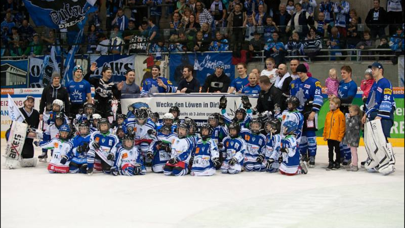 Es war für alle ein großes Fest, dieser Familientag der Dresdner Eislöwen und wer weiß, vielleicht läuft irgendwann eines der Laufschulkinder von heute für die erste Mannschaft auf. Die Laufschule trainiert auf jeden Fall weiter fleißig für dieses Ziel und ganz sicher konnte heute auch noch der eine oder andere Löwe unter den Zuschauern geweckt werden.