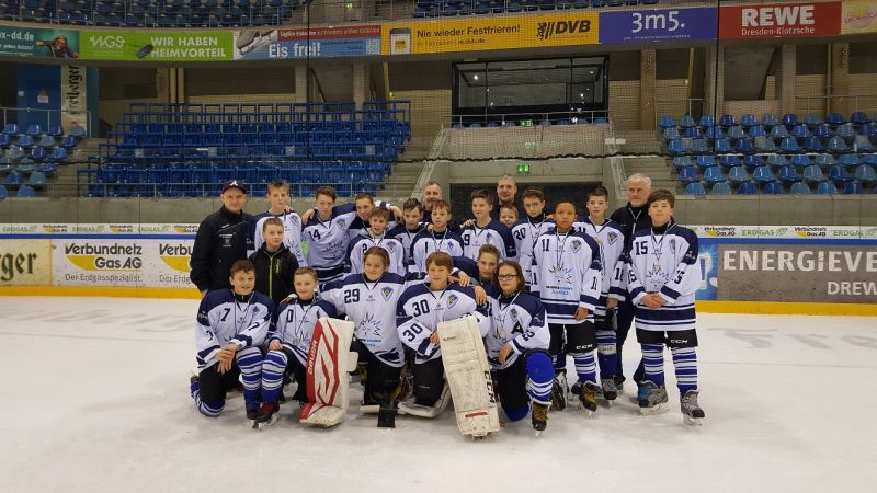 In der Gruppe A hießen die Gegner HC Usti (0:3; 1:2), die U14-Landesauswahl Hessens (1:0;1:4) und der REV Bremerhaven (2:1;0:0). Die fünf erreichten Punkte bedeuteten den 2. Platz in der Gruppe und ein Aufeinandertreffen mit dem ES Weißwasser im Viertelfinale. In einer umkämpften Partie konnten sich die Gastgeber mit 3:1 durchsetzen und in das Halbfinale einziehen, wo der Gruppengegner, die U14-Landesauswahl Hessens bereits wartete. Am Ende eines kräftezehrenden Tages hatten die Dresdner Sportler mehr Frische in den Beinen und konnten sich mit 6:2 durchsetzen.